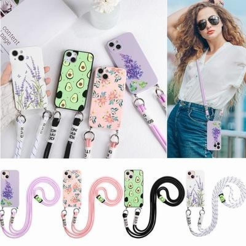 Авокадо Цветок Crossbody Ожерелье Шнур Шнур Шнур шнурки Чехол для телефона для iPhone 13 12 11 Pro S