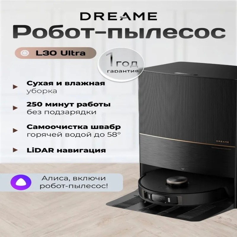 1 x Робот-пылесос, 1 x Базовая станция, 1 x Боковая щетка, 2 x Губка для влажной уборки, 2 x Держатель для губки, 1 x Кабель питания, 1 x Мешок для мусора, 1 x Кисть для очистки, 1 x средство для очистки, 1 x Инструкция